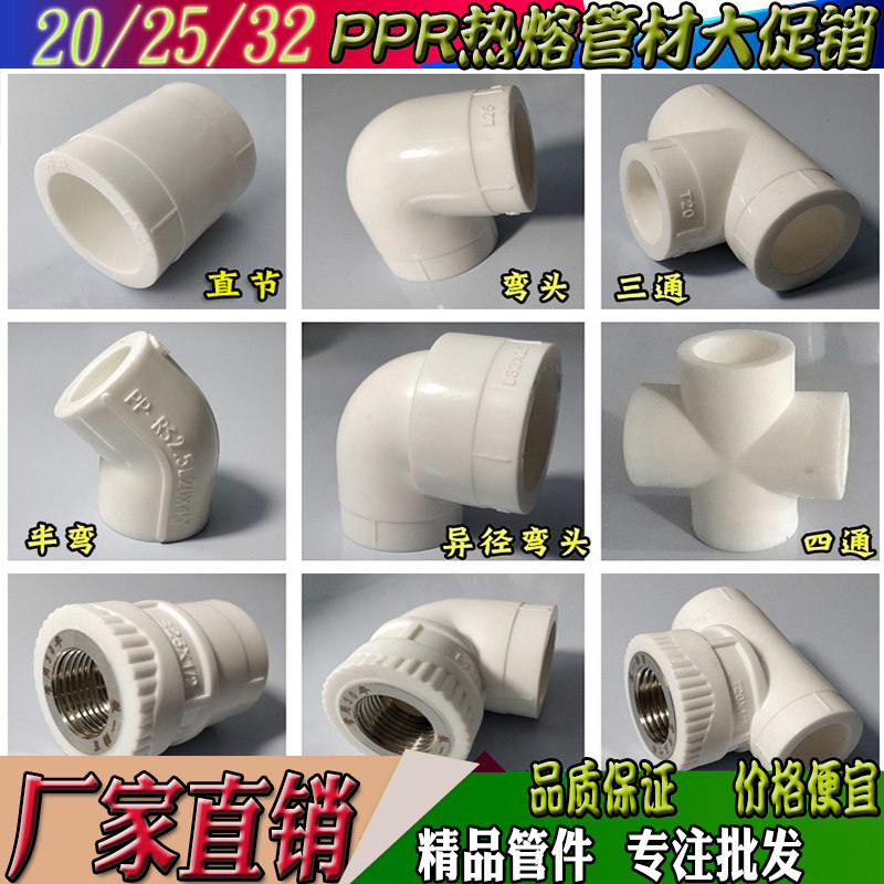 Hot melt PPR water pipe accessories Daquan 4 points 20 elbows 6 points 25 three-way 1 inch 32 bridge internal and external wire direct blocking plug