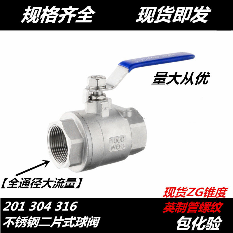 304 stainless steel ball valve two-piece type two-piece internal thread inner wire water switch valve 4 minutes 6 minutes 1 inch dn1520