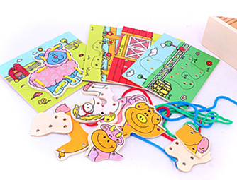 Solid wood Animals threading handmade toys Puzzle Young Teaching Stitch Live Girls Jigsaw Puzzle Desktop Children Toddler Toys