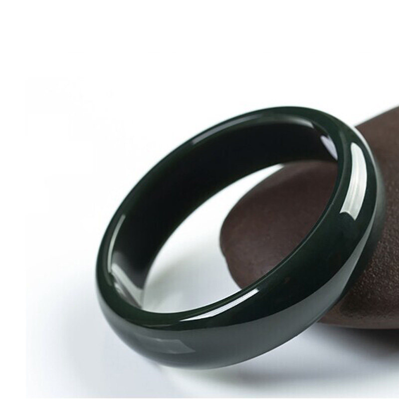 Natural Xinjiang and Tian Yuqing jade bracelets female section Wangfu true jade wide strips of black ink jade bracelet children's mother-Taobao