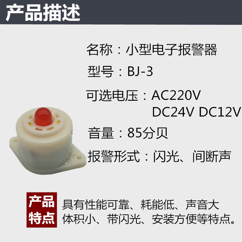 Small audible and visual siren BJ-3 mini electronic buzzer flashy trumpet DC12V24V AC220V