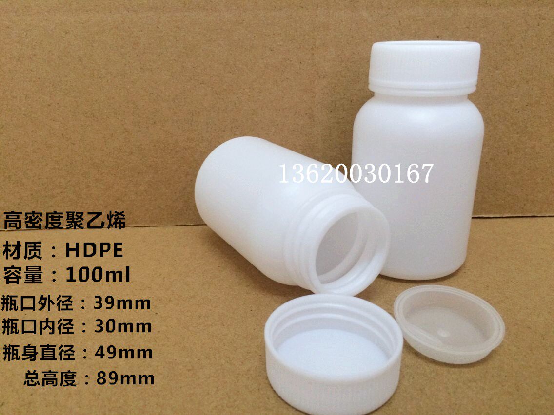 100ml plastic white big mouth HDPE round bottle powder bottle reagent bottle sample bottle solvent bottle