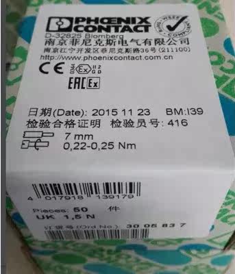 Phoenix contact straight-through terminal block UK1 5N order number 3005837