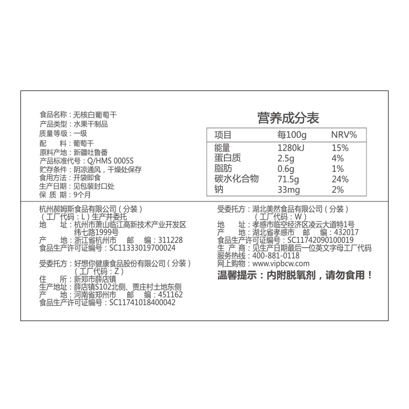 Seedless green 200g Rose Red Raisins 200g Rose Red Raisins 100gx2 bags Black Currant Raisins 200g ---- --- -- -