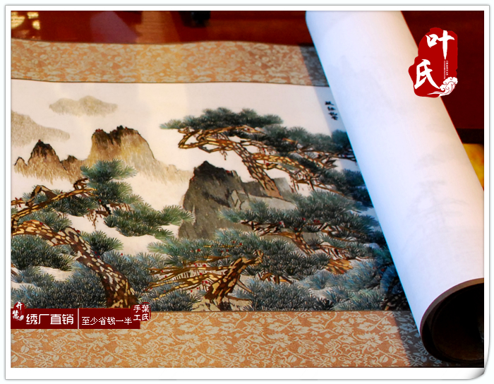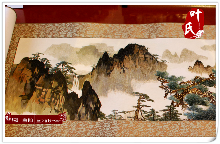 Xiangembroidery Handmade Embroidered Finished Living Room Decoration Hanging Painting Scroll Boutique Gift Craft Gift Pendulum with Cloud Sea Songtao