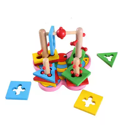 Solid wood butterfly geometric shape cognitive column set Building block matching smart house Children 2-3-4-5-year-old girl toy