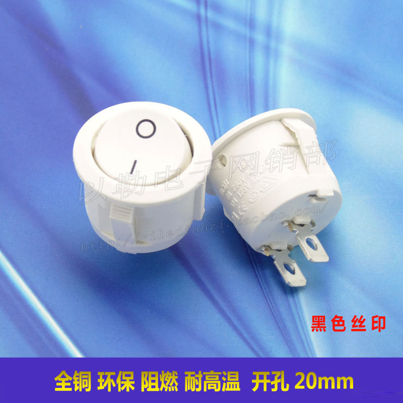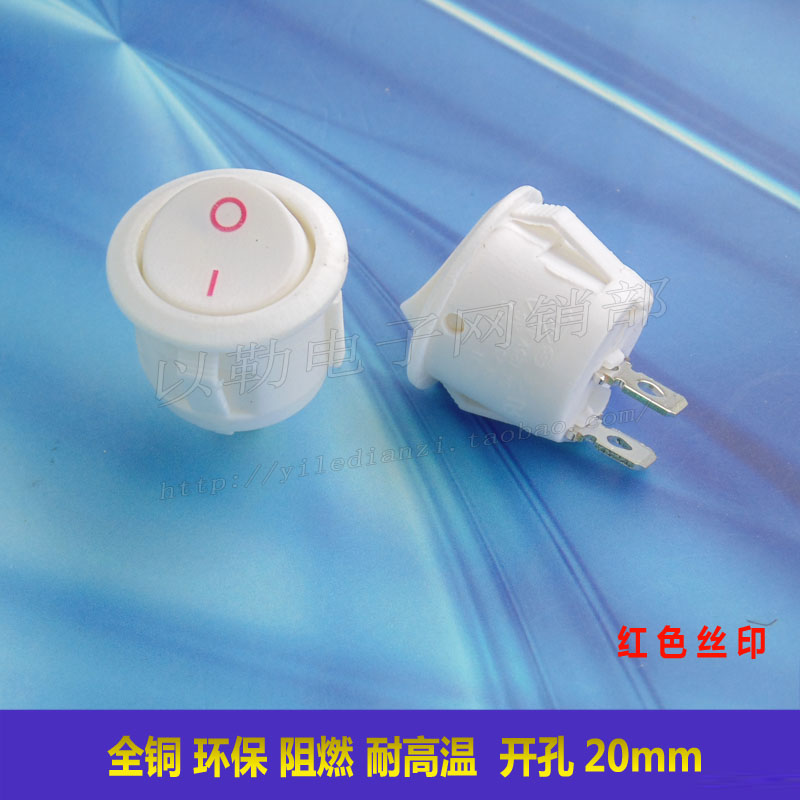KCD1 Rocker switch round 2 feet 3 feet 6A250V Rocker switch aperture 20mm round white ship-shaped switch
