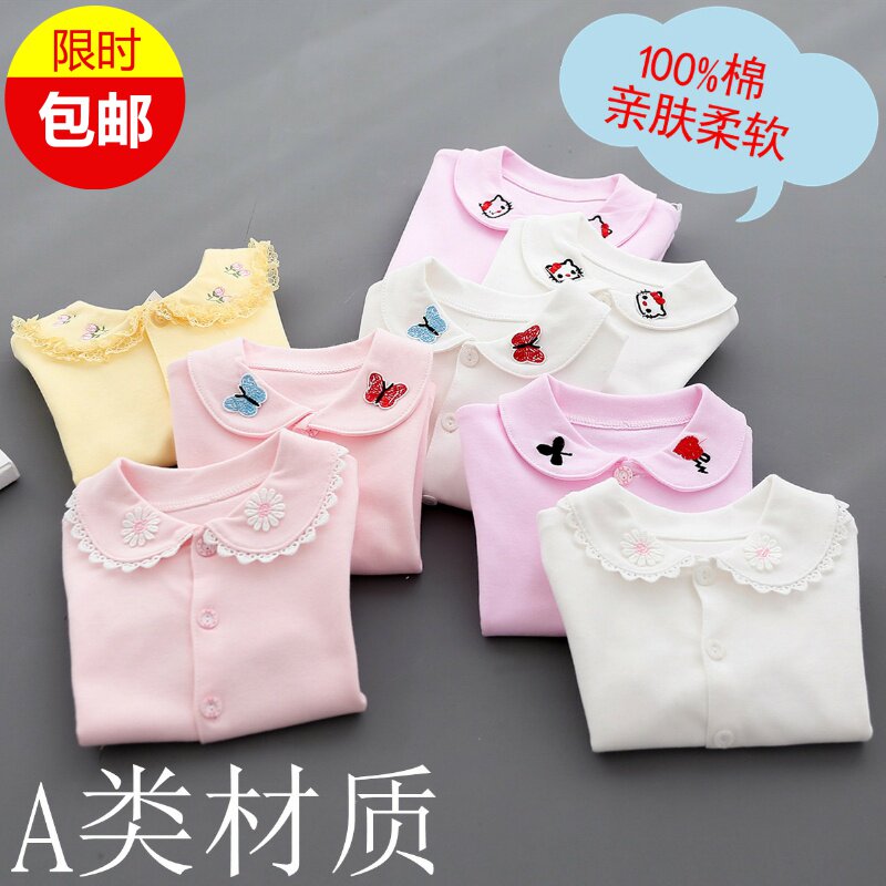 Spring and autumn girls shirt pure cotton 0 - 1 - 2 - 3 years old baby long sleeve shirt white blouse