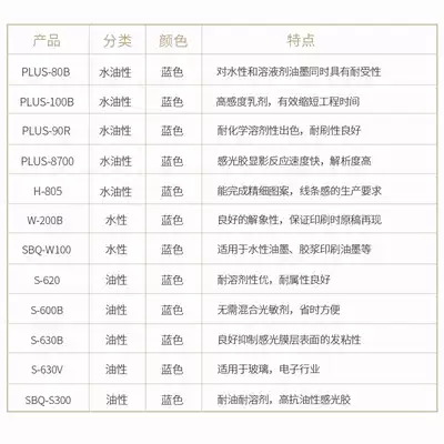 Tianling 200B diazoide-resistant photosensitive rubber Tianling 620 diazoide solvent-resistant photosensitive gum Tianling 600B oil-resistant photosensitive gum Tianling 630B solvent-resistant photosensitive gum Tianling 630V oil resistance