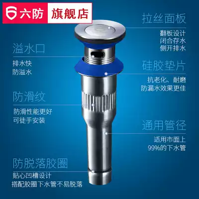 Six anti-wash basin bathroom cabinet Stainless steel bouncing flap drain outlet drainer deodorant sewer plug