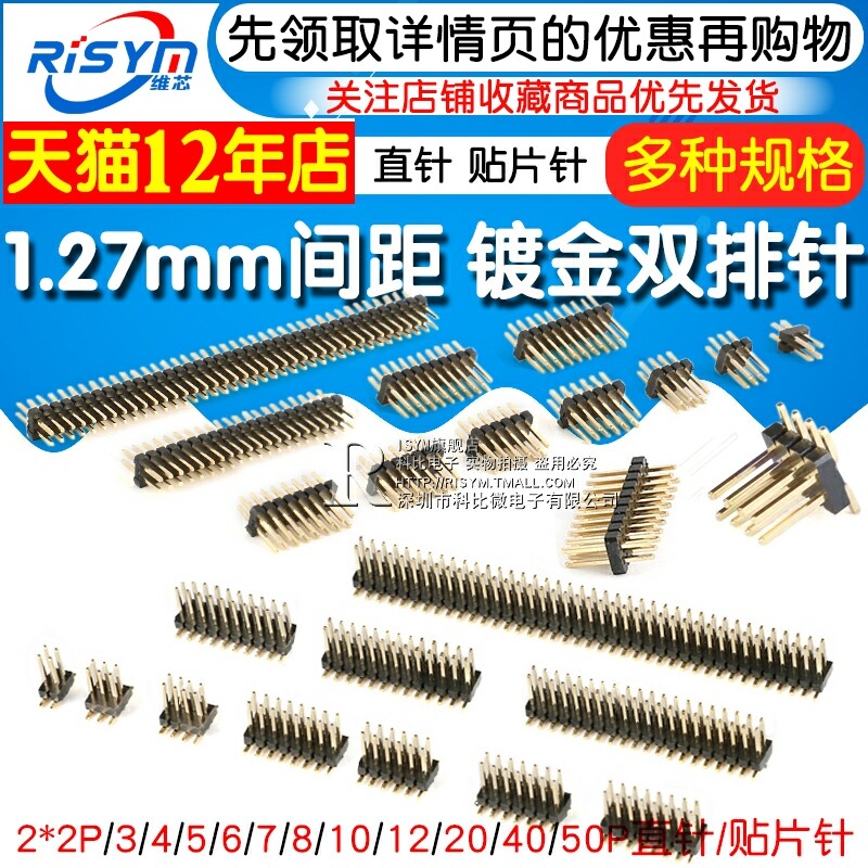 2*2P Double row straight needle Copper plating 1 27mm (20) 2*3P double row straight needle Copper plating 1 27mm (10) 2*4P double