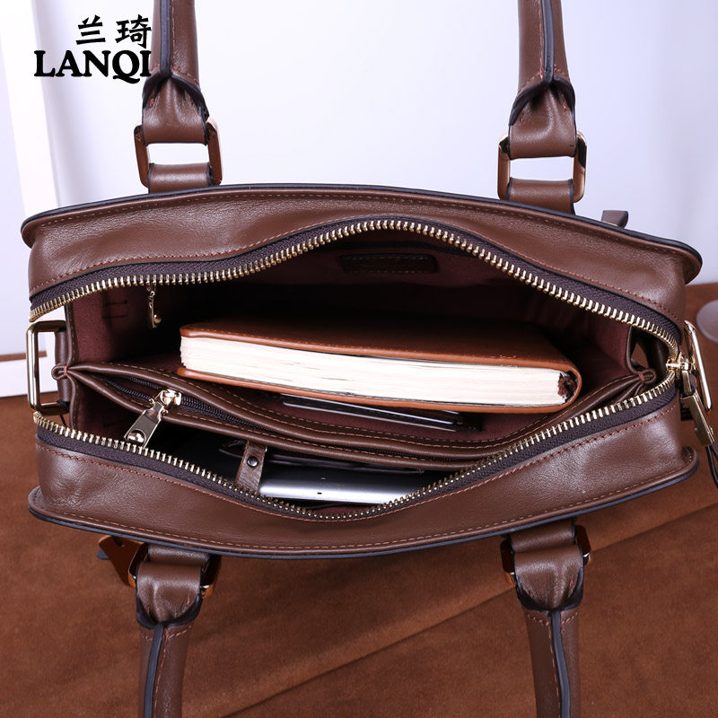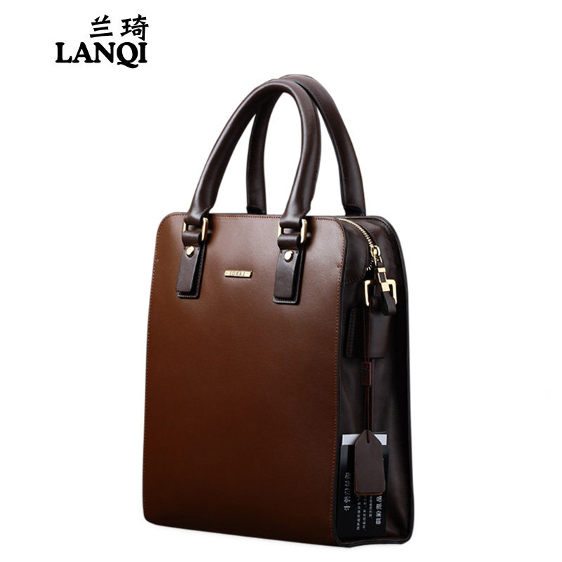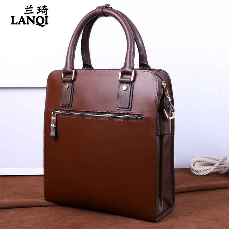 Lanqi Men's Bag Men's Business Handbag Fashion Whole Cow Leather Briefcase Diagonal Cross Single Shoulder Bag Vertical brown
