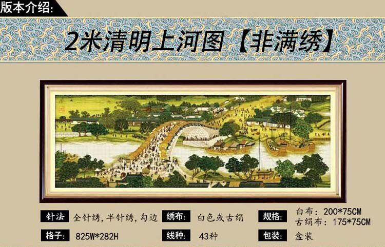 Cross-stitch thread embroidery new style of Qingming Shanghe map panoramic painting full embroidery 3 meters 2022 mountain and river map 2 meters ancient silk cloth
