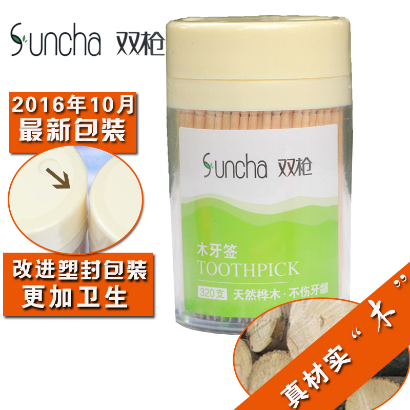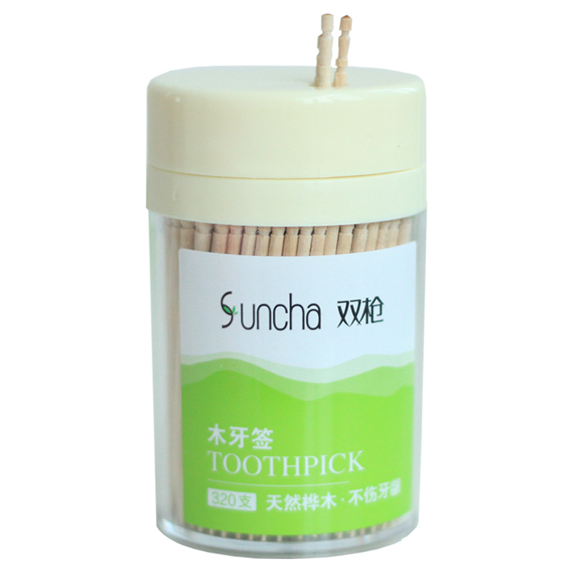 Double gun wood toothpick flossing Birch toothpick Hotel household single head wood fine toothpick Ultra-fine soft toothpick box