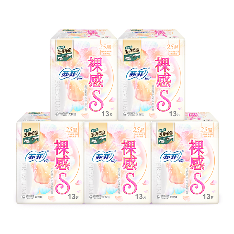Sufi sanitary cotton nude sensation S quantity of daily sanitary cotton 13 pieces * 5 packs 25cm official net Flagship Aunt