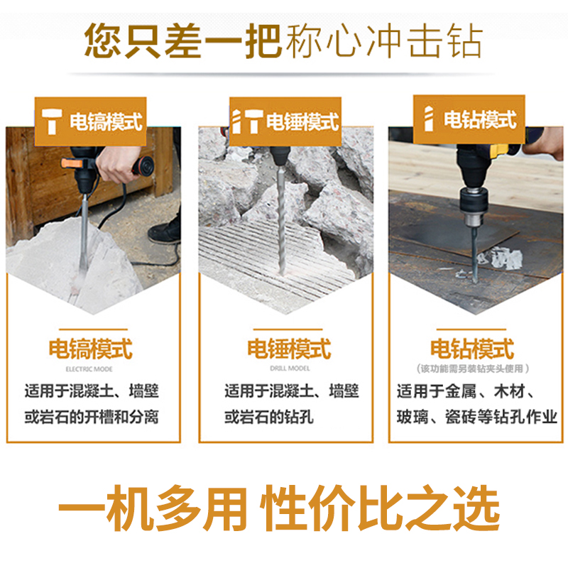 Rea 1080W multi-function rotary hammer drill Light household impact drill Electric drill electric pick three-use high-power industrial grade