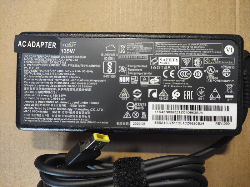 Suitable for Lenovo ThinkPad T540p T440p Y50 power adapter 20V 6 75A square port 135W