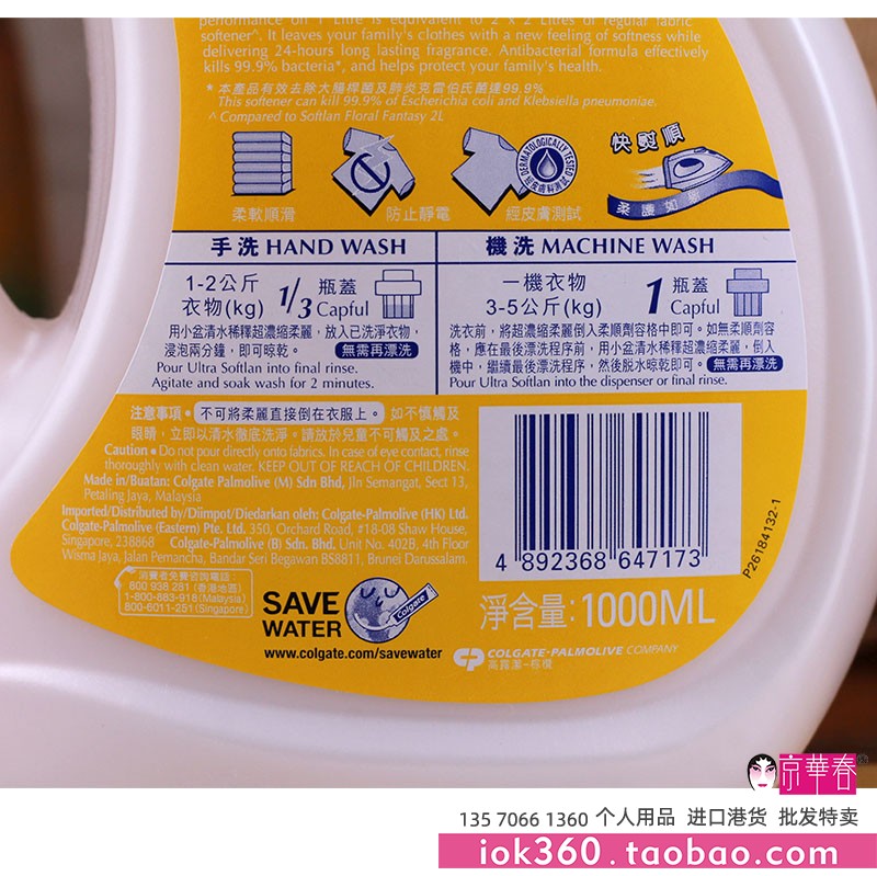 Hong Kong imported Rou Li super concentrated clothing softener 1L mildew-proof sterilization disinfection Sunshine fragrance soft Hong Kong goods