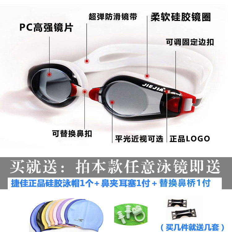 Waterproof anti-fog myopia swimming goggles send swimming hat suit male lady with a degree of swimming glasses left and right different