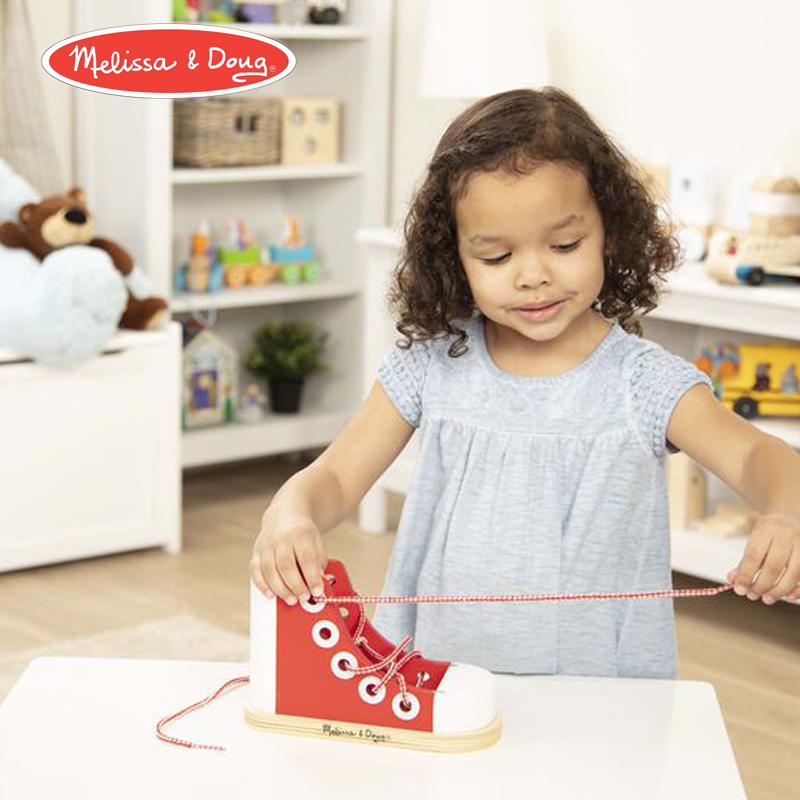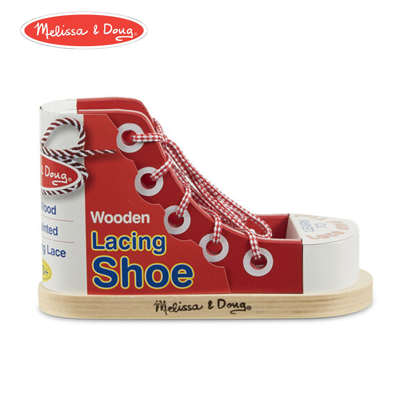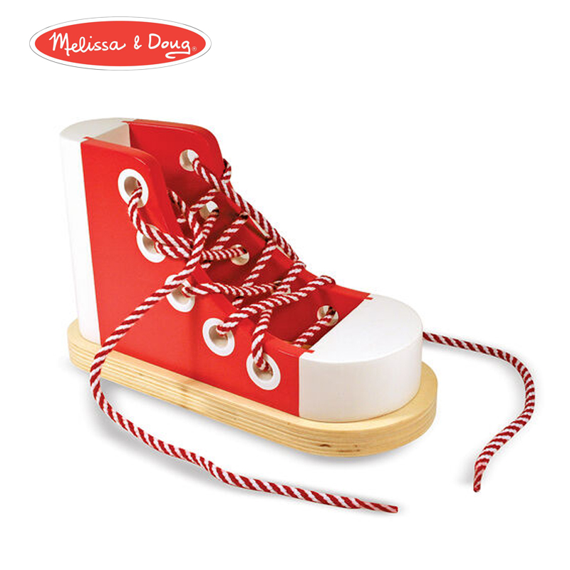 American Melissa Doug Laces Tie Method Teaching Toys Wood Wearing Rope Toys Children Puzzle Toys