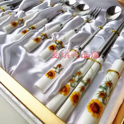 South Korea imported tableware wedding gift sunflower ceramic stainless steel spoon chopsticks spoon chopsticks spoon chopsticks