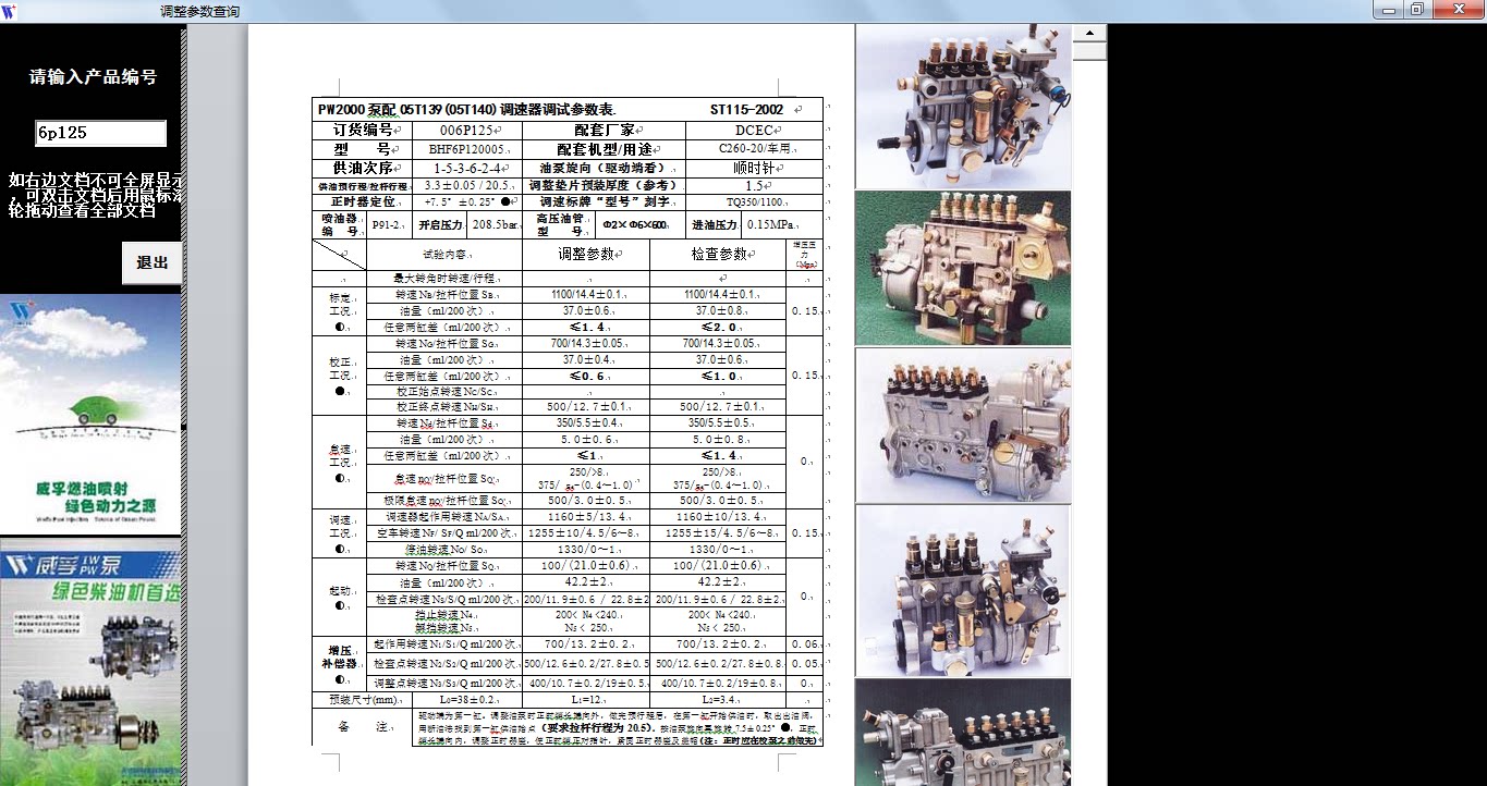 Data on the commissioning of the Wuxi Weifu oil pump