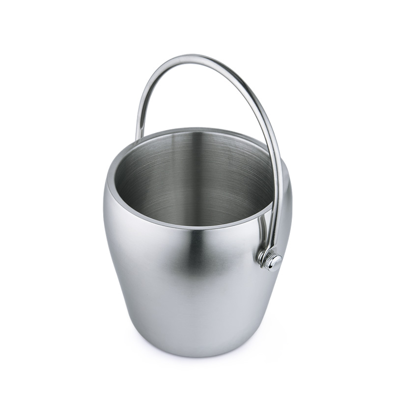 Huang Hawk Stainless Steel Ice Bucket Double with lid frosted Ice Grain Barrel Hand Insulated Ice Bucket LQ094