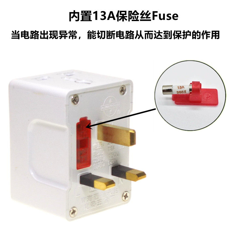 Yongjian 13A English gauge transfer 10A One to 30 thousand with conversion plug with insurance tube porous China Hong Kong