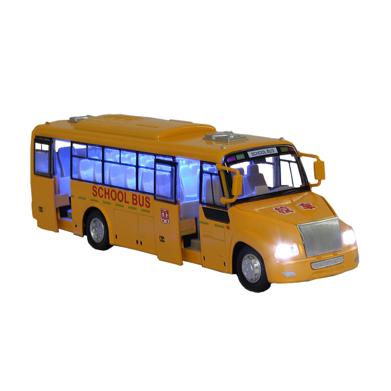 Paint 1:32 alloy car model simulation bus school bus sound and light back children's toy male