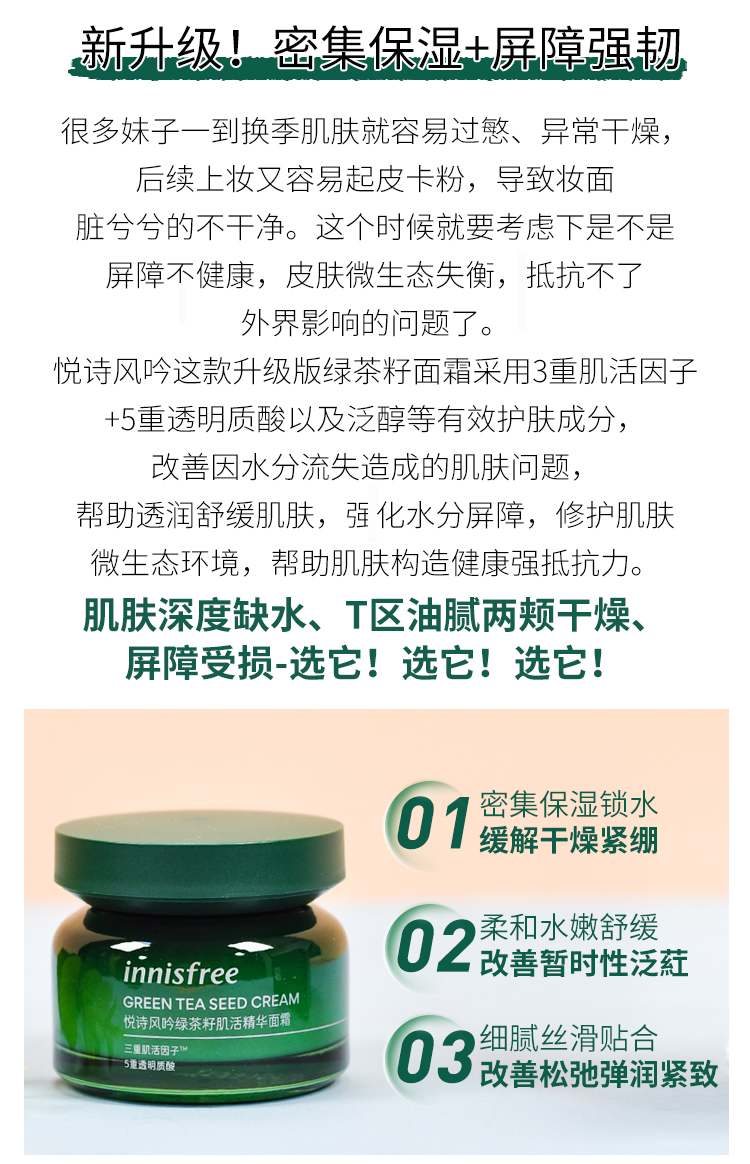 South Korea innisfree Yueshifengyin green tea seed essence moisturizing cream 50ml
