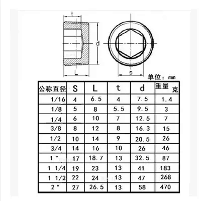 Hexagon socket plug plug Oil plug Stop screw plug ZG RC1 8 1 4 3 8 1 2 3 4 1 inch