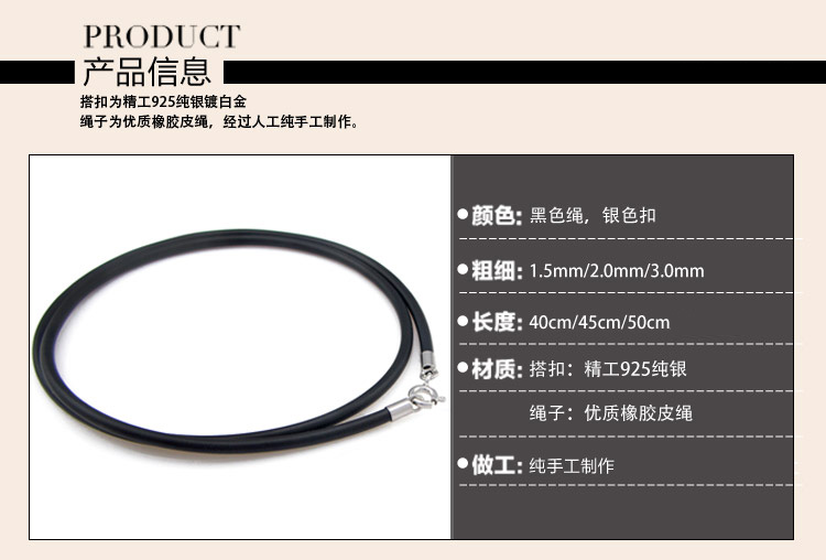 Sterling silver buckle Black leather rope necklace Sweater chain Hand chain Wax rope Couple necklace rope for men and women