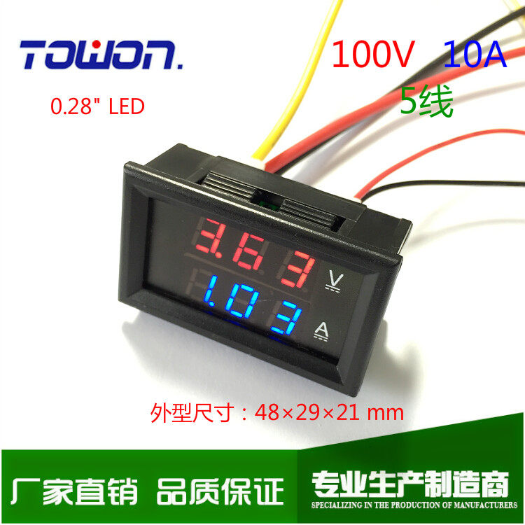 Red-Blue bicolor DC number of current meter electric voltmeter DC100V DC10A direct measurement does not need a splitter