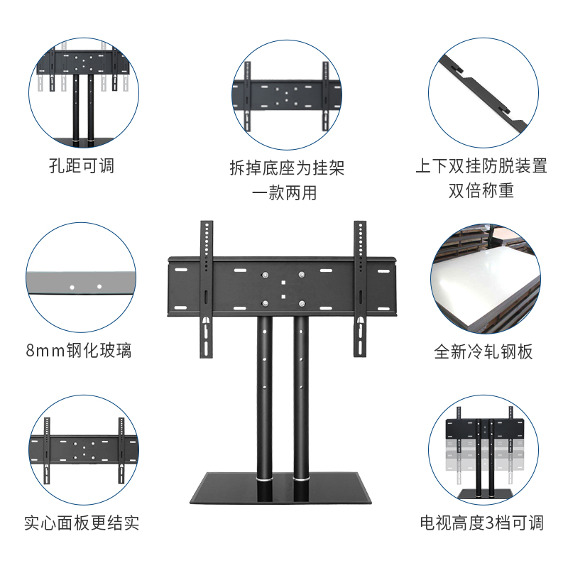 Double column type--37-65 inch single column type--32-55 inch metal type-39-75 inch (must be installed with 4 holes)