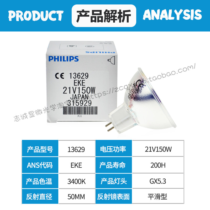 Philips Philips Halogen Lamp Cup Bubble EKE 13629 21v150w Microscope Cold Light Source Bulb