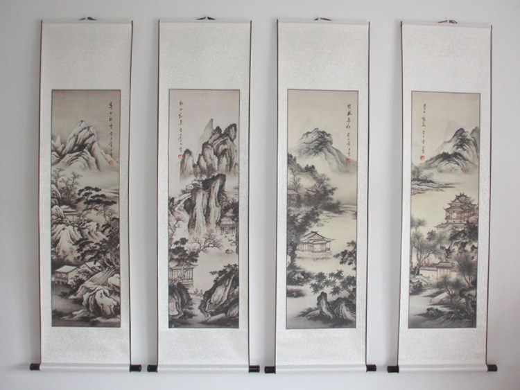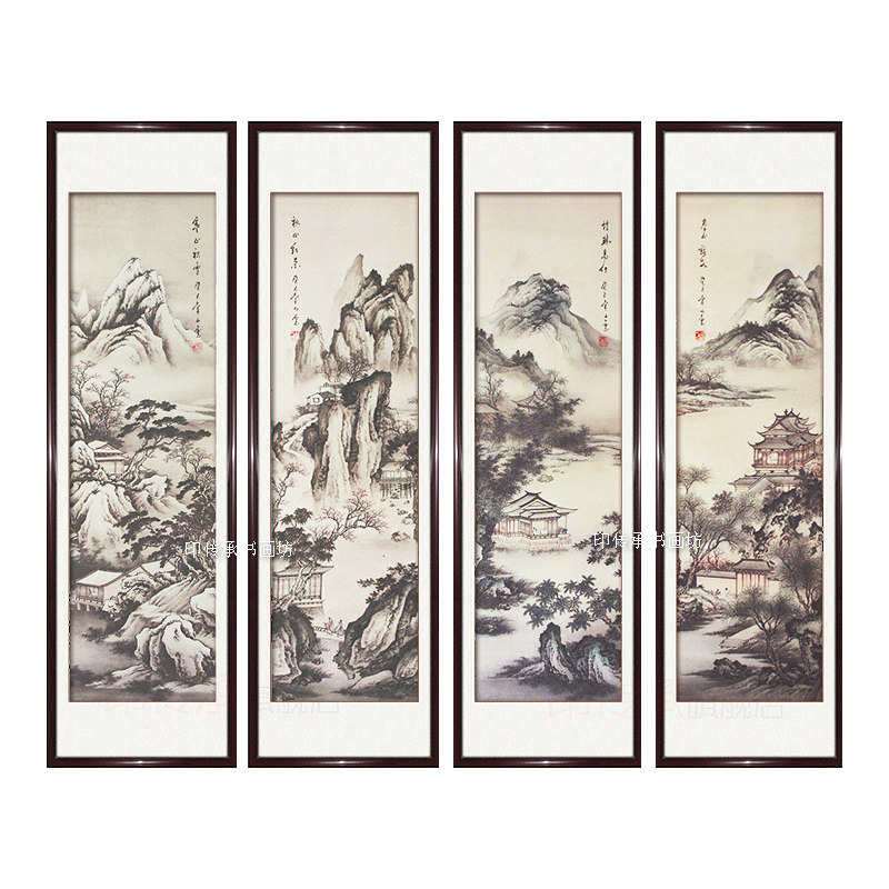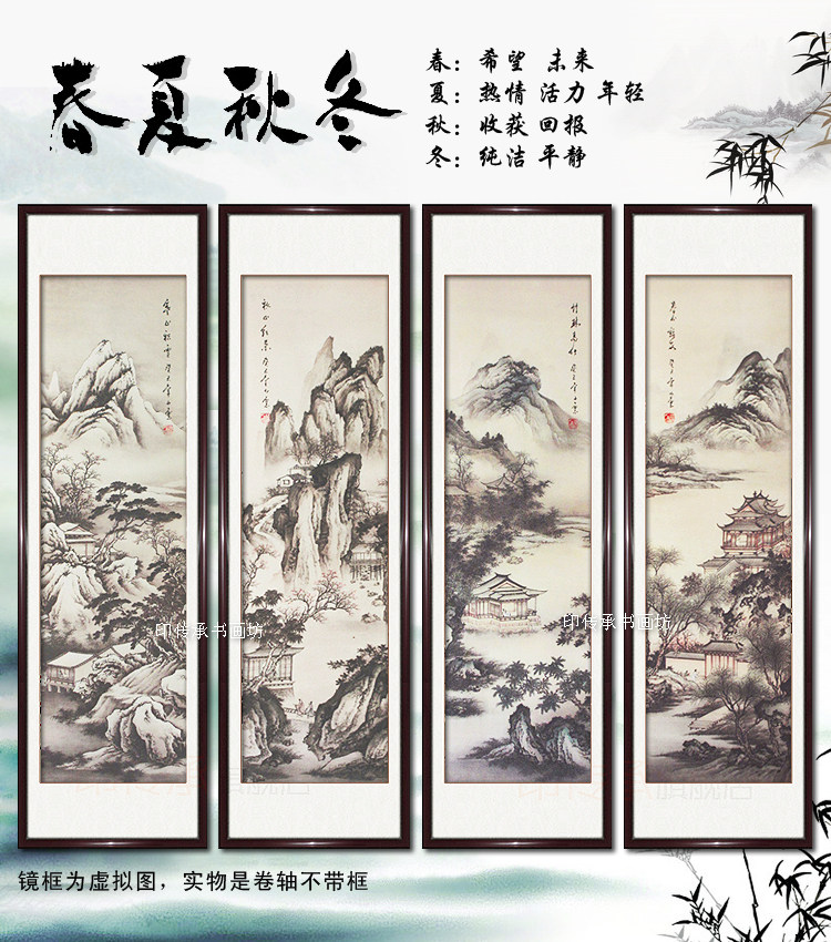 Spring, summer and winter simulation of four screen landscape painting new Chinese living room sofa office decoration painting fresco
