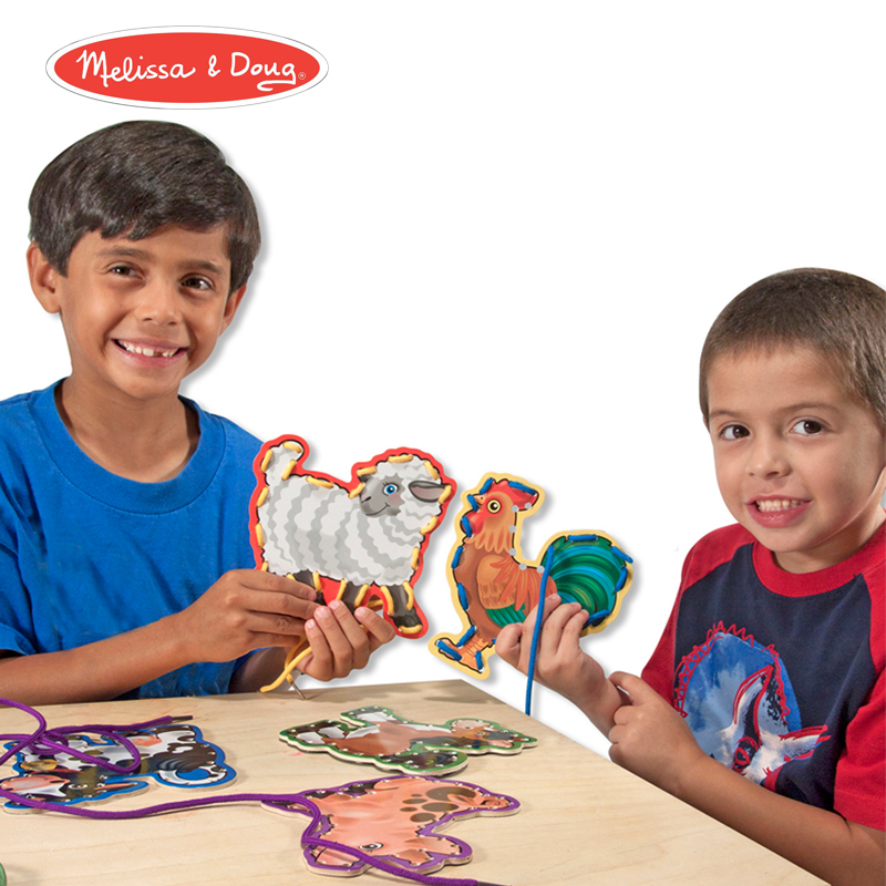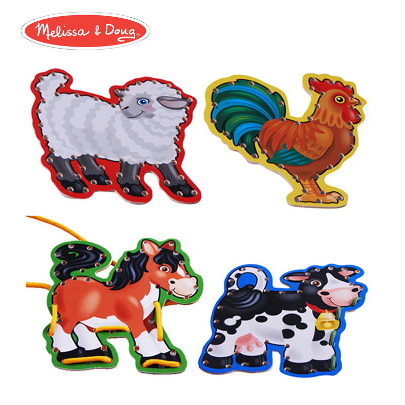 American Melissa Doug Farm Animals Wear Rope Toys Early Teach Toys Puzzle Children Woody Toys