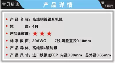 Ocean Heart imported Teflon monocrystalline copper silver-plated wire headphone cable audio cable diy headset upgrade wire