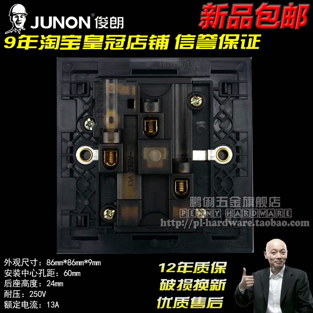 JUNON Junlong stainless steel black switch with lamp 13A square foot triple pole English-style socket Hong Kong Macau Singapore