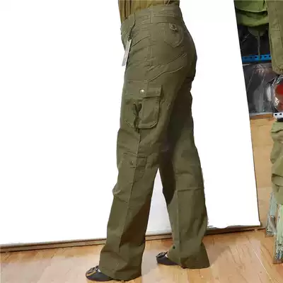 Outdoor clothing ladies leisure mountaineering army green multi-pocket straight cotton canvas Four Seasons long pants War God autumn