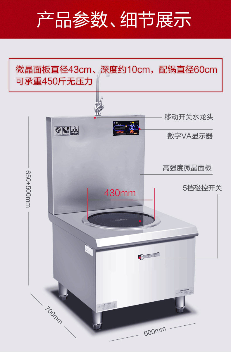 Chef Mai Commercial induction cooker 15kw canteen kitchen equipment high-power commercial soup hob induction cooker