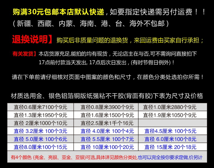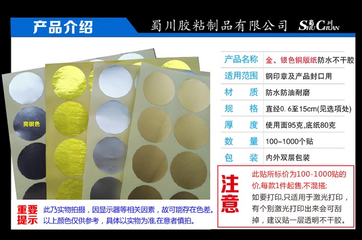 Midnumber round 32-55mm waterproof sub gold Asian silver bright gold bright silver steel print certificate patch kraft paper closure sticker