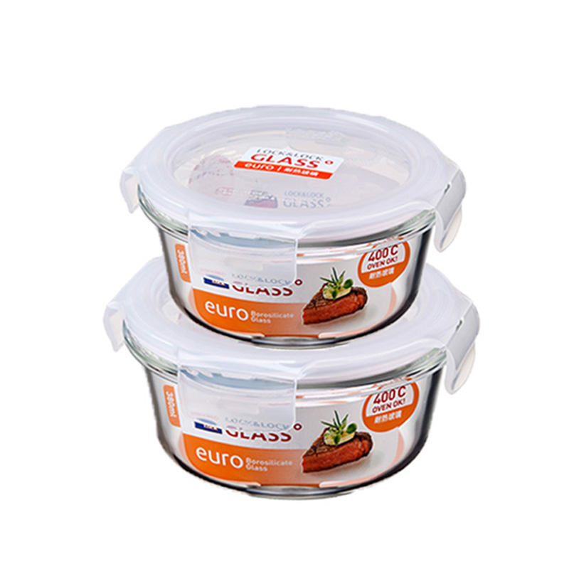Music Buckle Music Buckle Glass Lunch Box Microwave Special Heating Preservation Box Round Large Capacity Lunch Box Bowl Food Grade