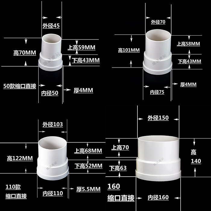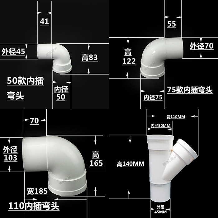 PVC50 75 110 Interpolated lower shrink middle shrink beam mouth elbow Direct three-way straight bend beam mouth Three-way four-way