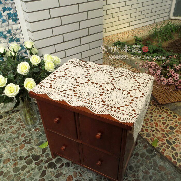 Fresh water lotus handmade crochet crochet cotton thread hollow European tablecloth pad chest of drawers bedside table cover cloth towel