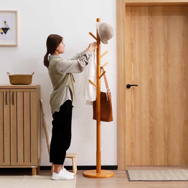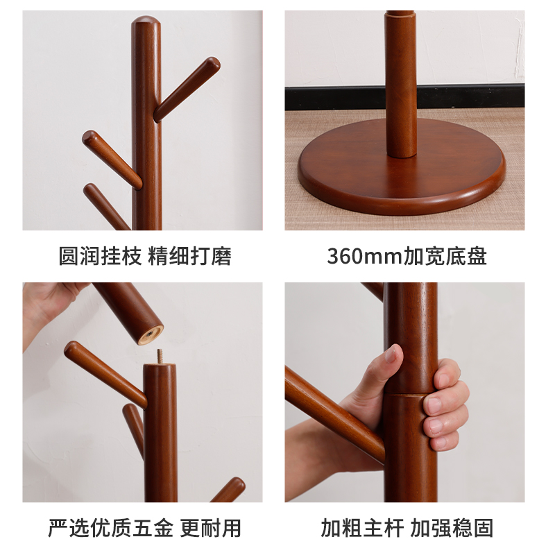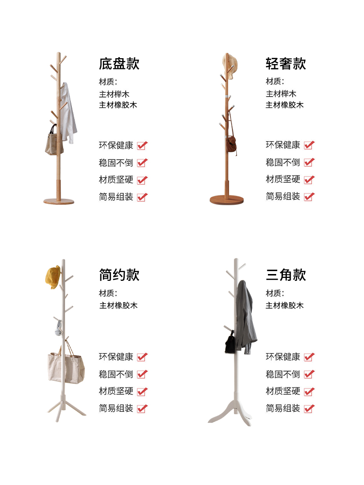 Solid wood hanger floor furniture hanging hanger simple clothes hat rack indoor thick small hanging bag rack