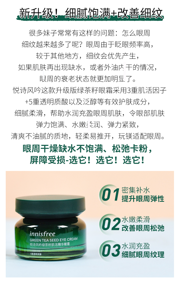 innisfreeInnisfree green tea eye cream moisturizing and moisturizing green tea seeds to improve dark circles and fine lines