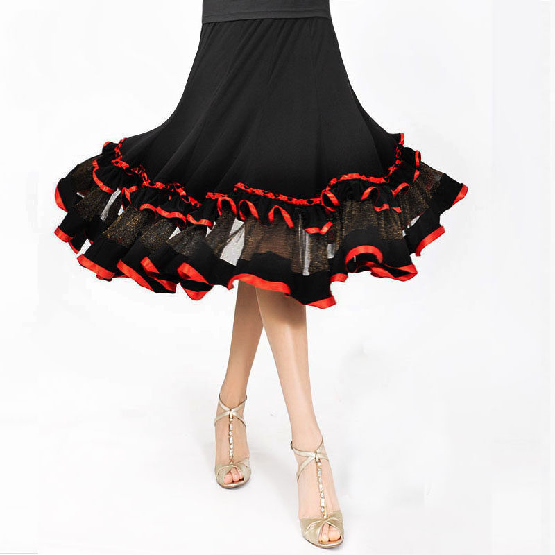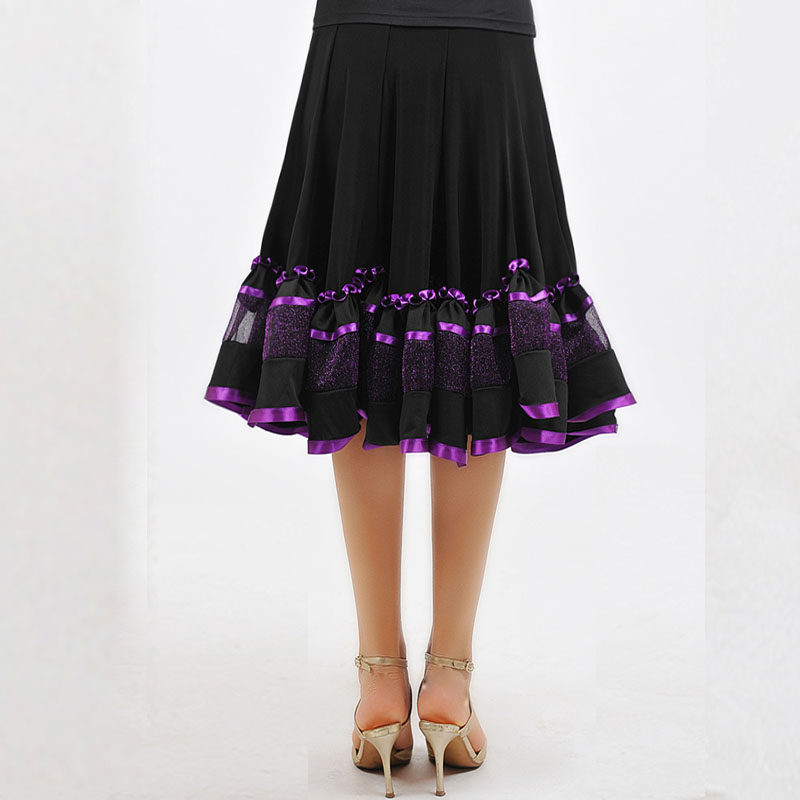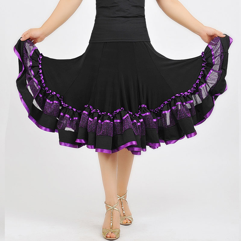 Tango Fighting Bull Dance Dress Morden Practice Dress Social Dance Dress Large Pendulum Square Skirt Ice Silk Purple Edge Middle Skirt Z-005