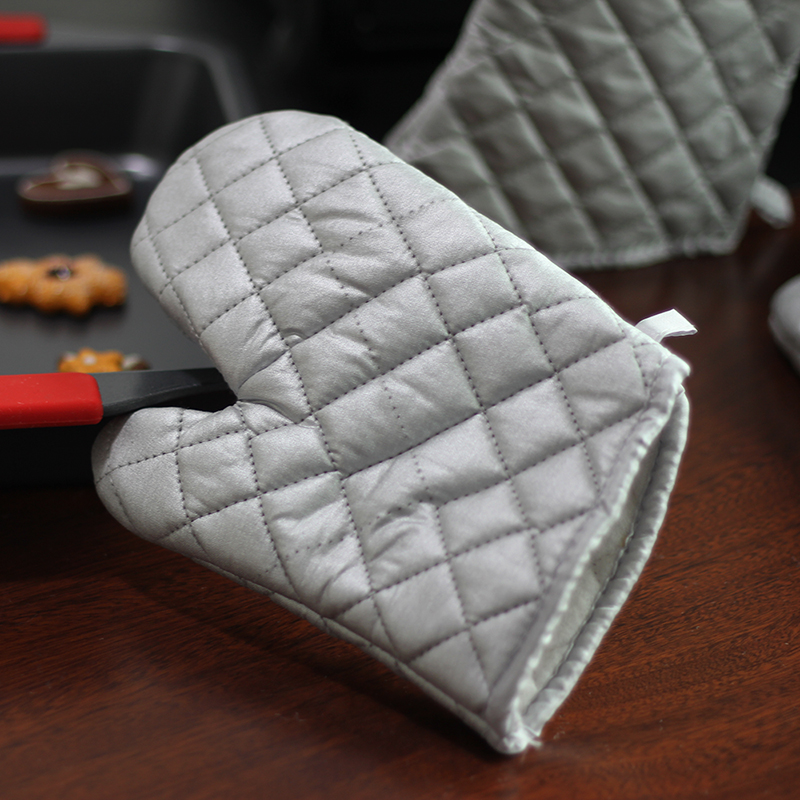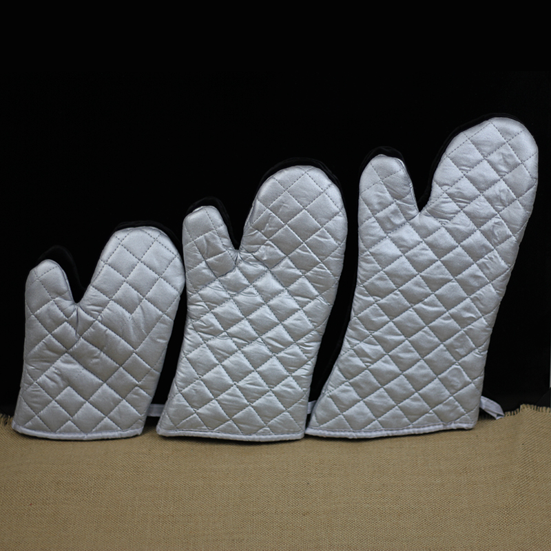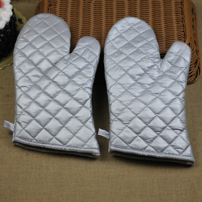 2pcs Sterling Silver Insulated Gloves Thick Oven Microwave Gloves Hot Cotton Cloth High Temperature Resistant Gloves
