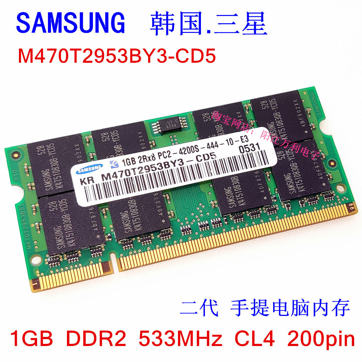 Samsung 1GB 2GB 2Rx8 PC2-4200S-444 2nd Generation Laptop Memory DDR2 533 1 8